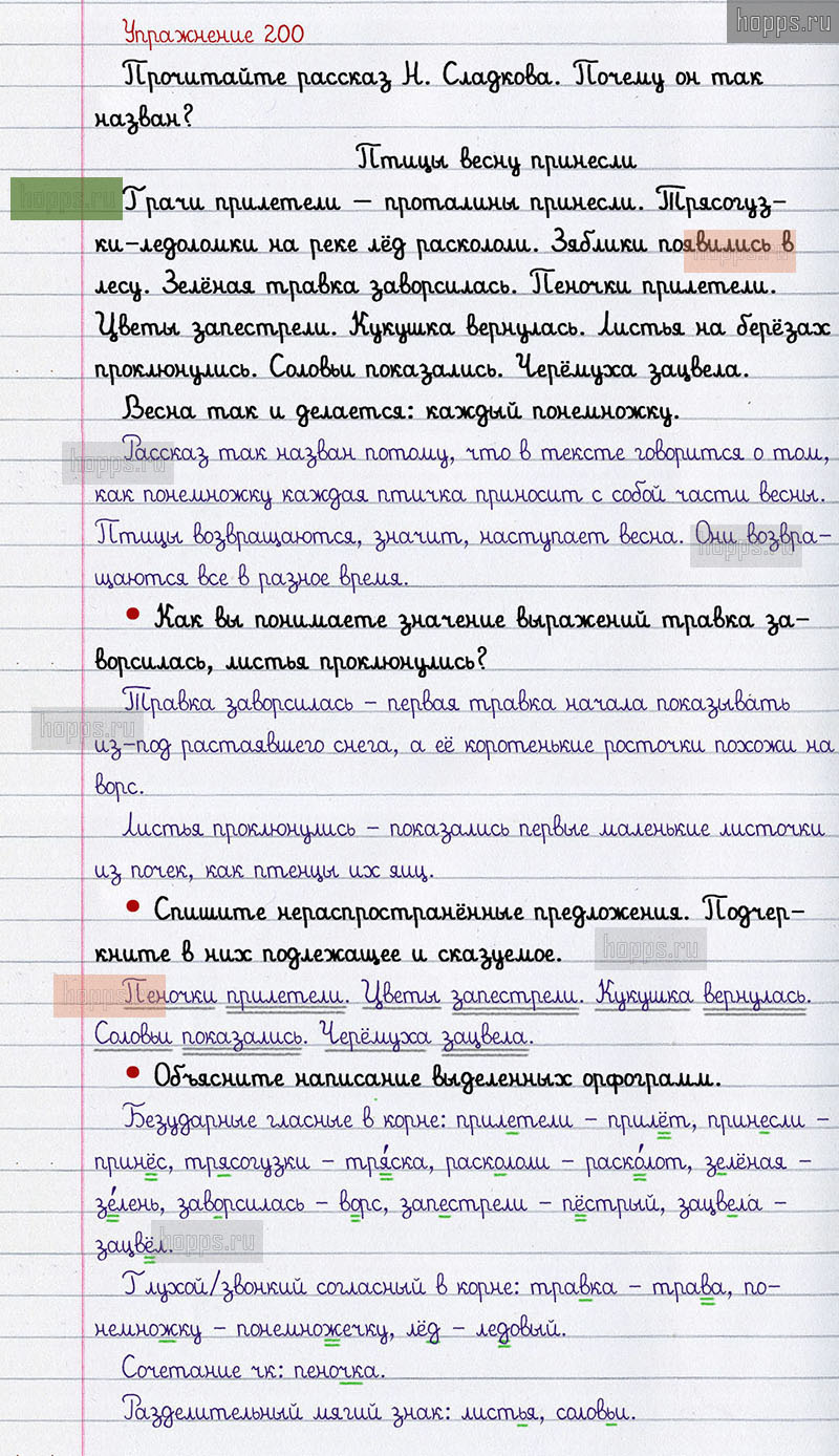 Подробные ответы к 200 упражнению 2 части учебника по русскому языку авторов В.П. Канакина, В.Г. Горецкий для учащихся 2 класса. Повторение.