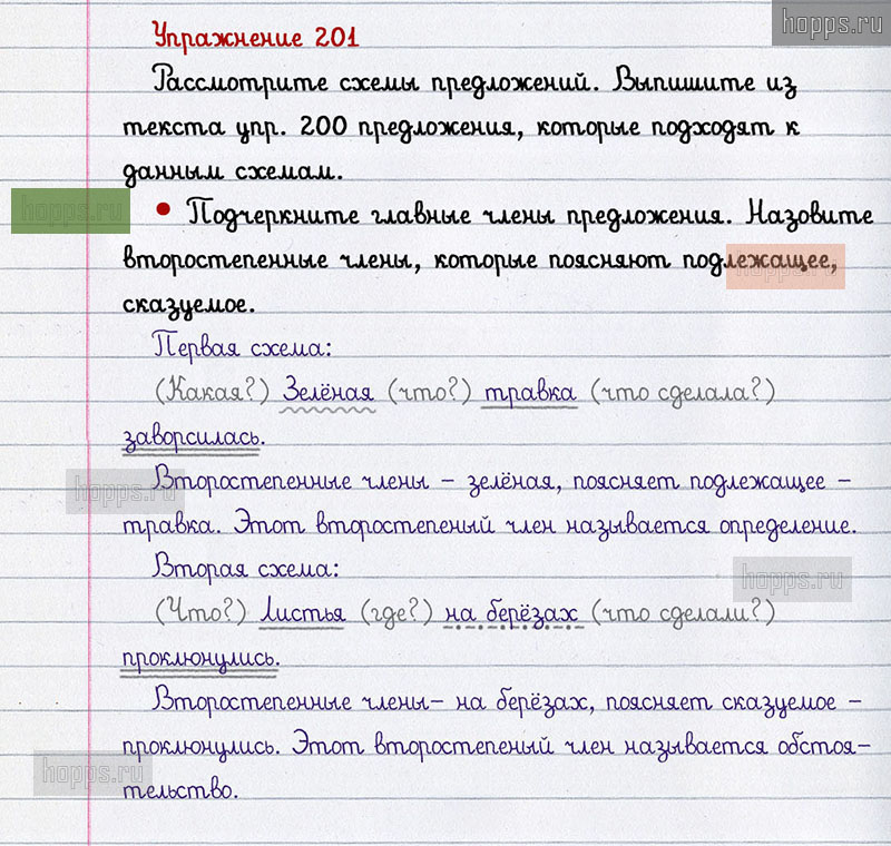 Подробные ответы к 201 упражнению 2 части учебника по русскому языку авторов В.П. Канакина, В.Г. Горецкий для учащихся 2 класса. Повторение.