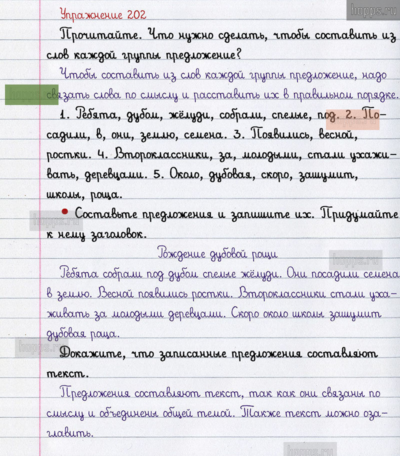Подробные ответы к 202 упражнению 2 части учебника по русскому языку авторов В.П. Канакина, В.Г. Горецкий для учащихся 2 класса. Повторение.