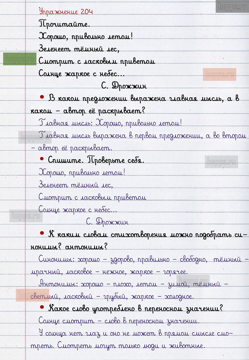 Подробные ответы к 204 упражнению 2 части учебника по русскому языку авторов В.П. Канакина, В.Г. Горецкий для учащихся 2 класса. Повторение.