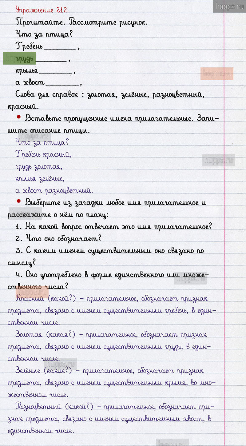 Подробные ответы к 212 упражнению 2 части учебника по русскому языку авторов В.П. Канакина, В.Г. Горецкий для учащихся 2 класса. Повторение.