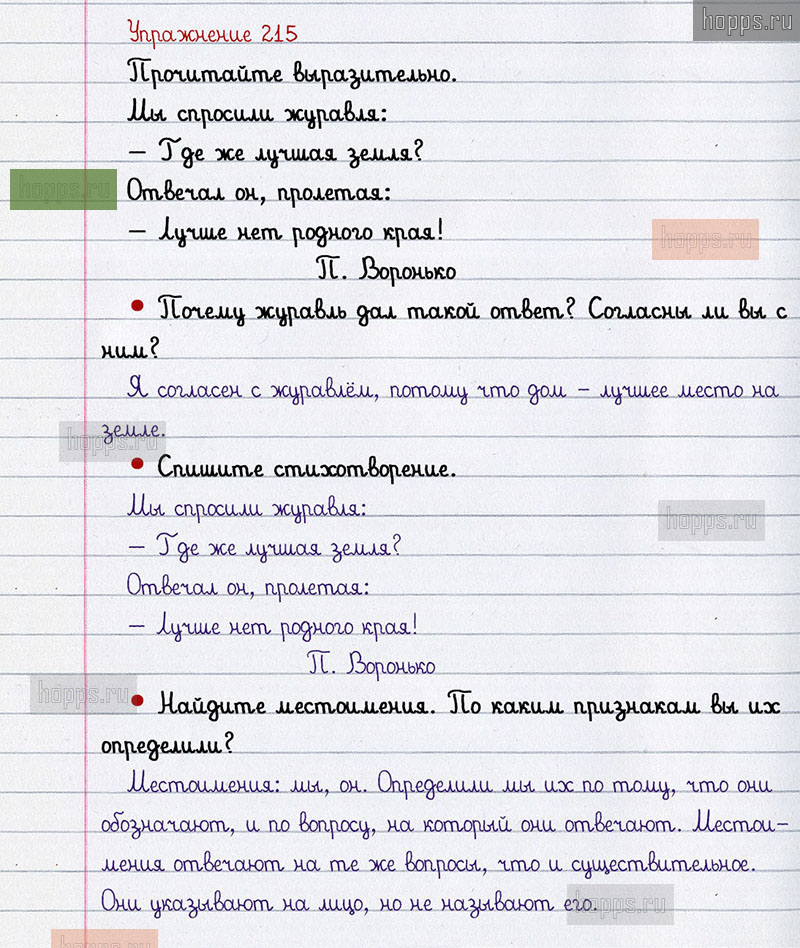 Подробные ответы к 215 упражнению 2 части учебника по русскому языку авторов В.П. Канакина, В.Г. Горецкий для учащихся 2 класса. Повторение.