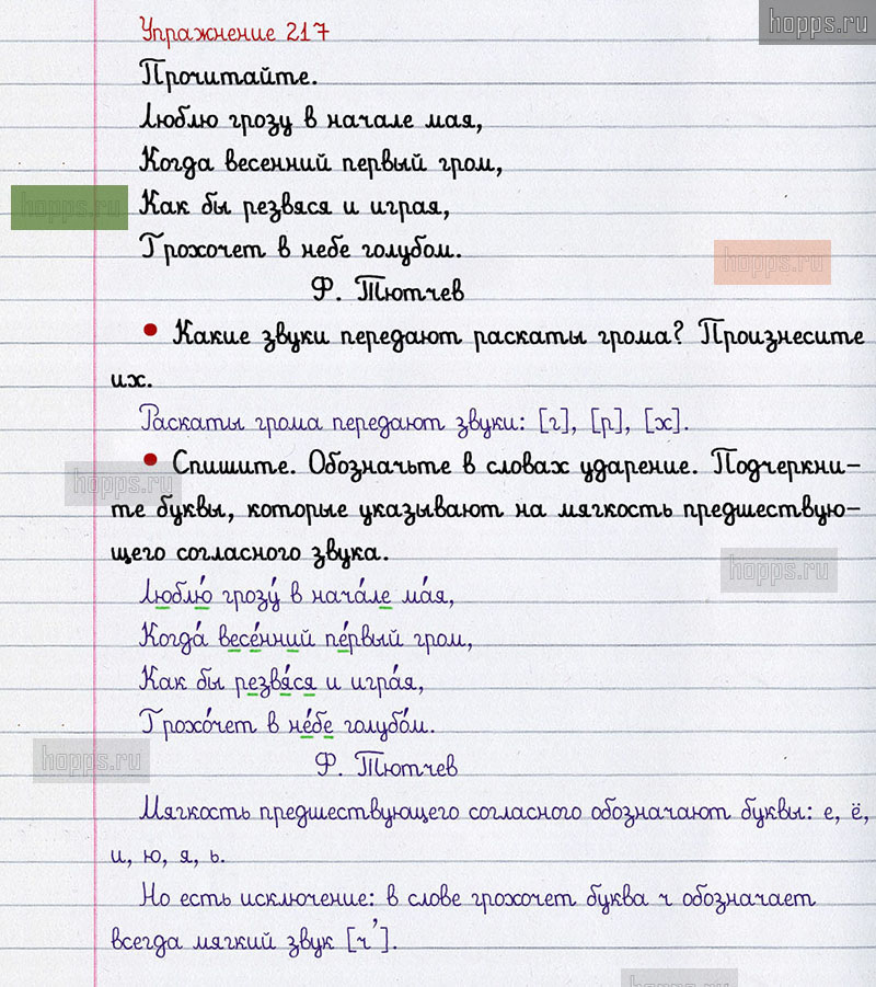 Подробные ответы к 217 упражнению 2 части учебника по русскому языку авторов В.П. Канакина, В.Г. Горецкий для учащихся 2 класса. Повторение.