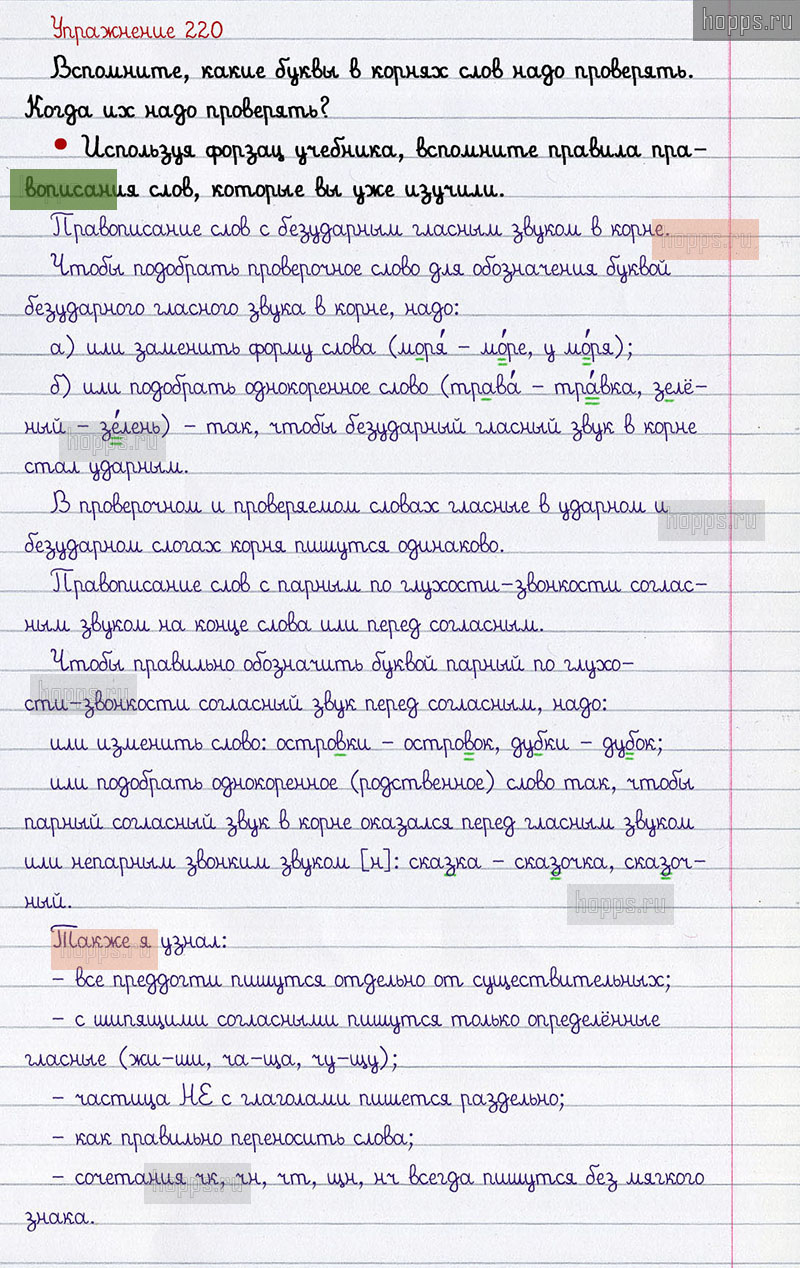 Подробные ответы к 220 упражнению 2 части учебника по русскому языку авторов В.П. Канакина, В.Г. Горецкий для учащихся 2 класса. Повторение.