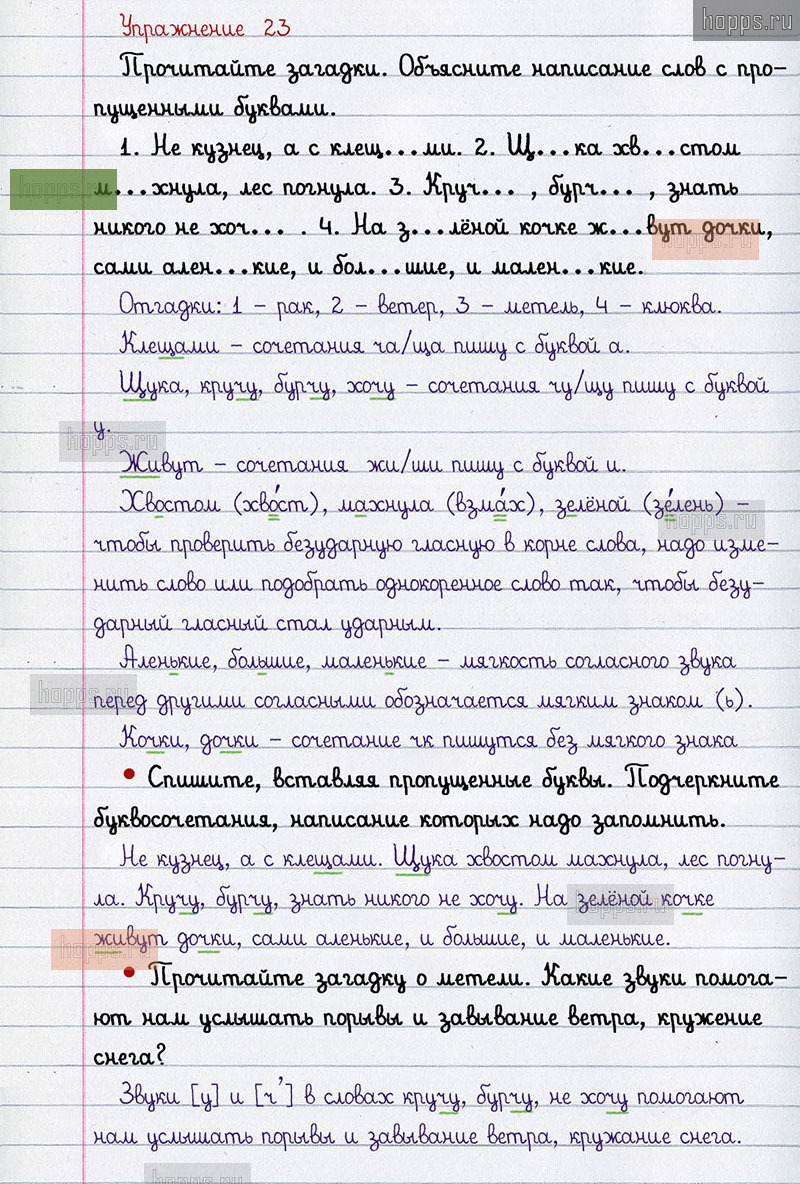 Подробные ответы к 23 упражнению 2 части учебника по русскому языку авторов В.П. Канакина, В.Г. Горецкий для учащихся 2 класса. Правописание буквосочетаний с шипящими звуками.