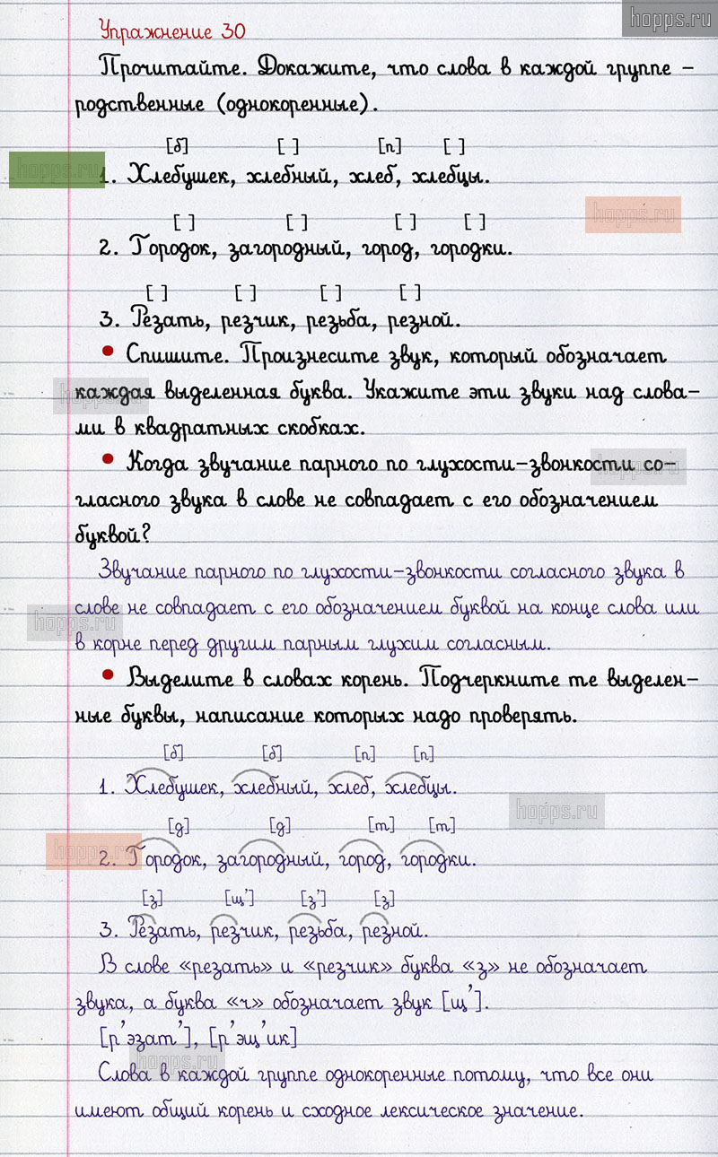 Подробные ответы к 30 упражнению 2 части учебника по русскому языку авторов В.П. Канакина, В.Г. Горецкий для учащихся 2 класса. Звонкие и глухие согласные звуки.