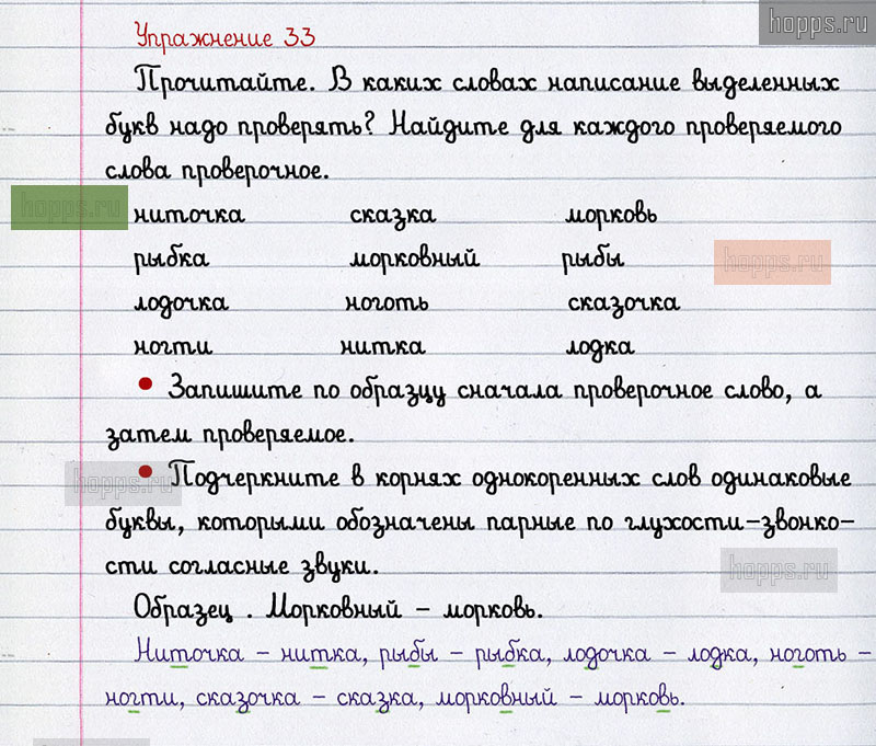 Подробные ответы к 33 упражнению 2 части учебника по русскому языку авторов В.П. Канакина, В.Г. Горецкий для учащихся 2 класса. Звонкие и глухие согласные звуки.