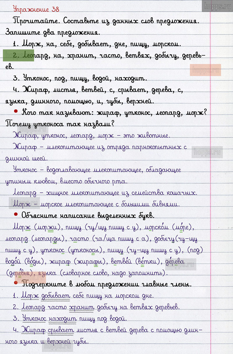 Подробные ответы к 38 упражнению 2 части учебника по русскому языку авторов В.П. Канакина, В.Г. Горецкий для учащихся 2 класса. Звонкие и глухие согласные звуки.
