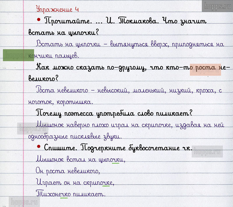 Подробные ответы к 4 упражнению 2 части учебника по русскому языку авторов В.П. Канакина, В.Г. Горецкий для учащихся 2 класса. Правописание буквосочетаний с шипящими звуками.