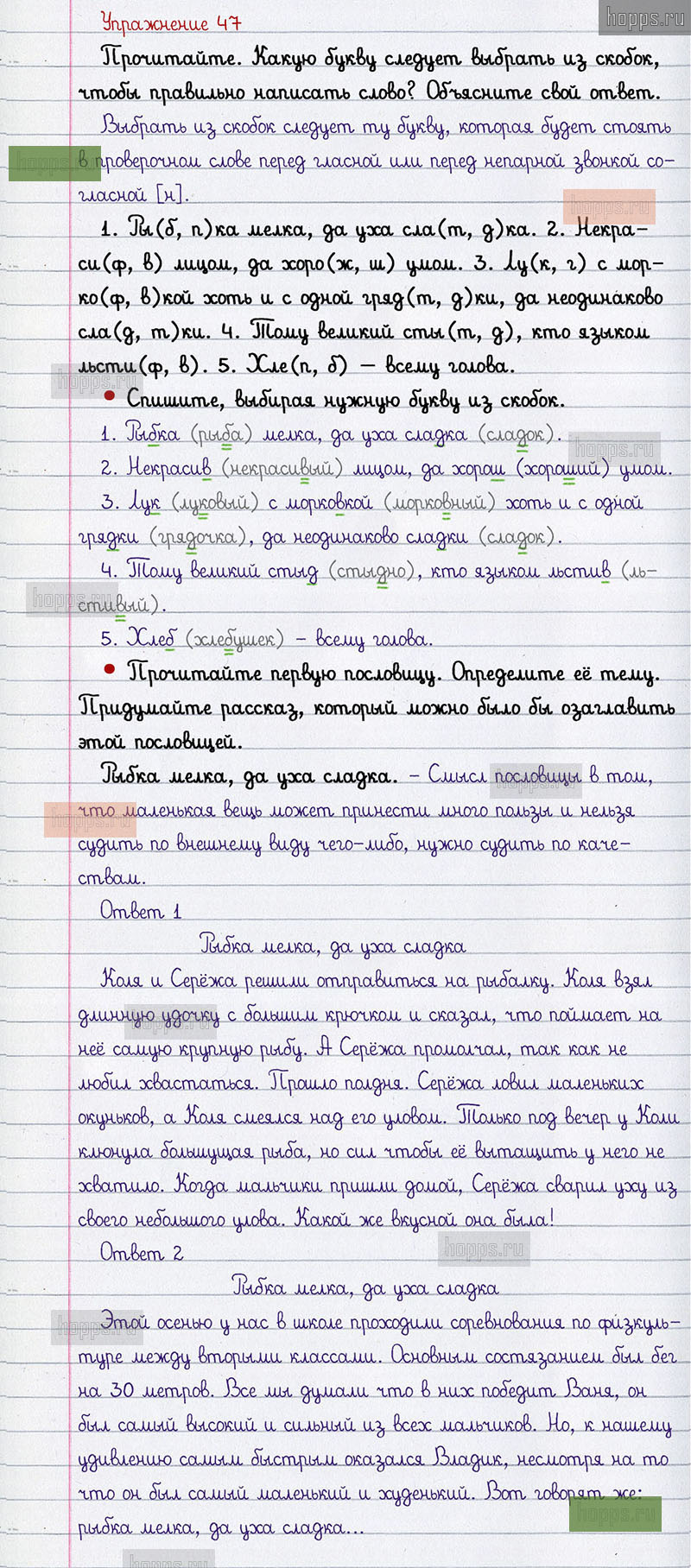 Подробные ответы к 47 упражнению 2 части учебника по русскому языку авторов В.П. Канакина, В.Г. Горецкий для учащихся 2 класса. Звонкие и глухие согласные звуки.