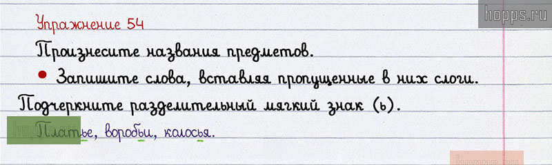 Подробные ответы к 54 упражнению 2 части учебника по русскому языку авторов В.П. Канакина, В.Г. Горецкий для учащихся 2 класса. Разделительный мягкий знак (ь).