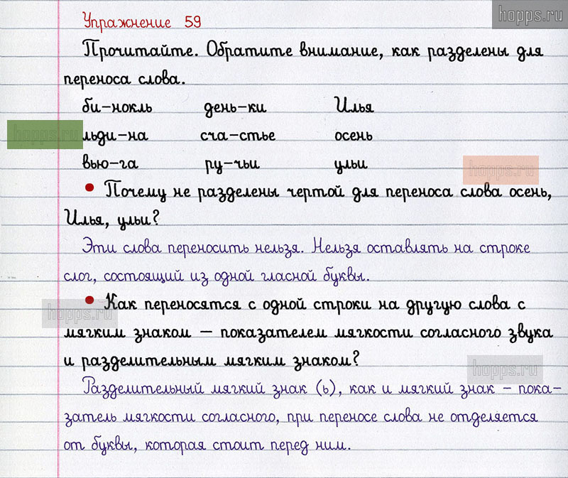 Подробные ответы к 59 упражнению 2 части учебника по русскому языку авторов В.П. Канакина, В.Г. Горецкий для учащихся 2 класса. Разделительный мягкий знак (ь).