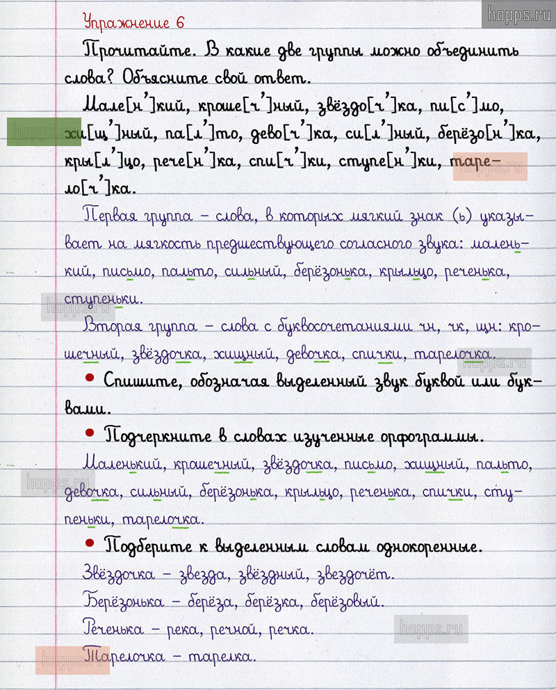 Подробные ответы к 6 упражнению 2 части учебника по русскому языку авторов В.П. Канакина, В.Г. Горецкий для учащихся 2 класса. Правописание буквосочетаний с шипящими звуками.