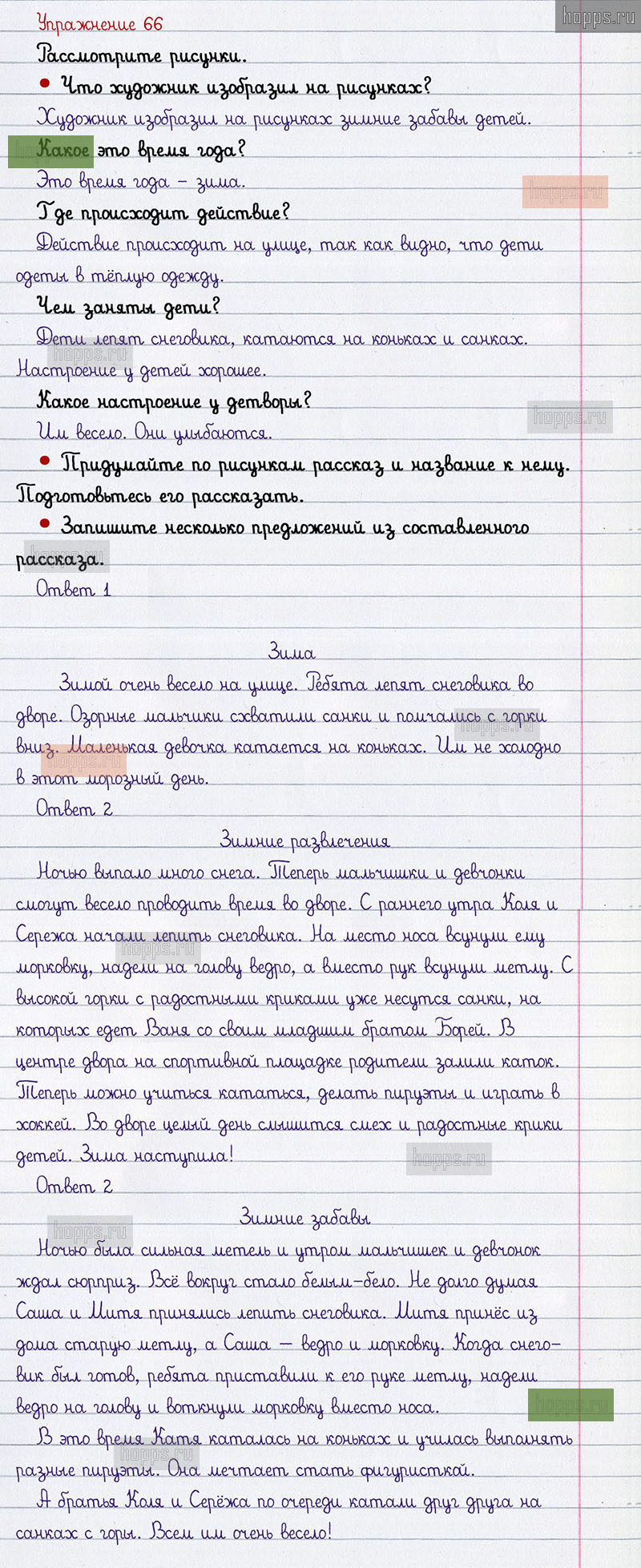 Подробные ответы к 66 упражнению 2 части учебника по русскому языку авторов В.П. Канакина, В.Г. Горецкий для учащихся 2 класса. Разделительный мягкий знак (ь).