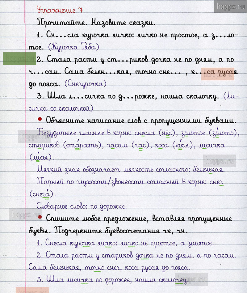 Подробные ответы к 7 упражнению 2 части учебника по русскому языку авторов В.П. Канакина, В.Г. Горецкий для учащихся 2 класса. Правописание буквосочетаний с шипящими звуками.
