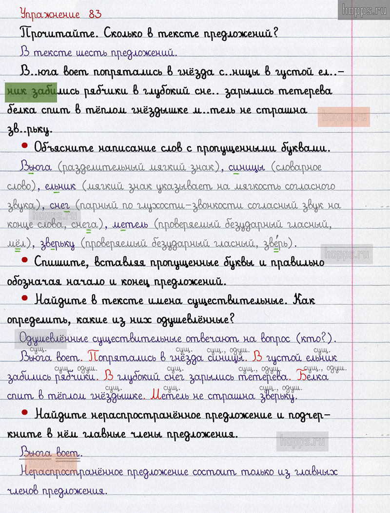 Подробные ответы к 83 упражнению 2 части учебника по русскому языку авторов В.П. Канакина, В.Г. Горецкий для учащихся 2 класса. Имя существительное.