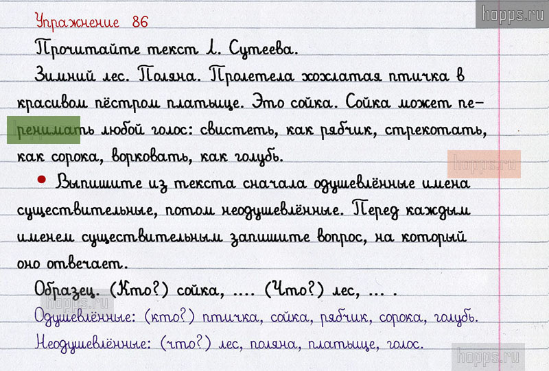 Подробные ответы к 86 упражнению 2 части учебника по русскому языку авторов В.П. Канакина, В.Г. Горецкий для учащихся 2 класса. Имя существительное.
