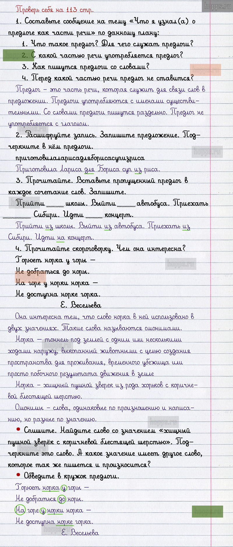 Подробные ответы к заданиям проверь себя на 113 странице 2 части учебника по русскому языку авторов В.П. Канакина, В.Г. Горецкий для учащихся 2 класса.