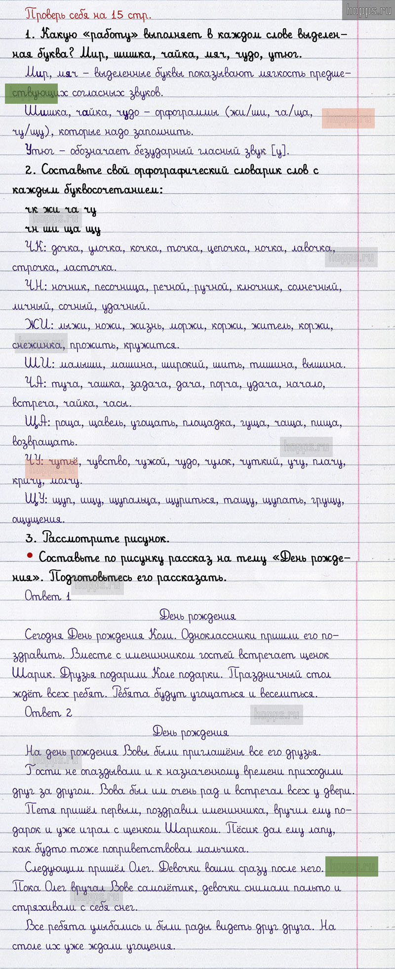 Подробные ответы к заданиям проверь себя на 15 странице 2 части учебника по русскому языку авторов В.П. Канакина, В.Г. Горецкий для учащихся 2 класса.