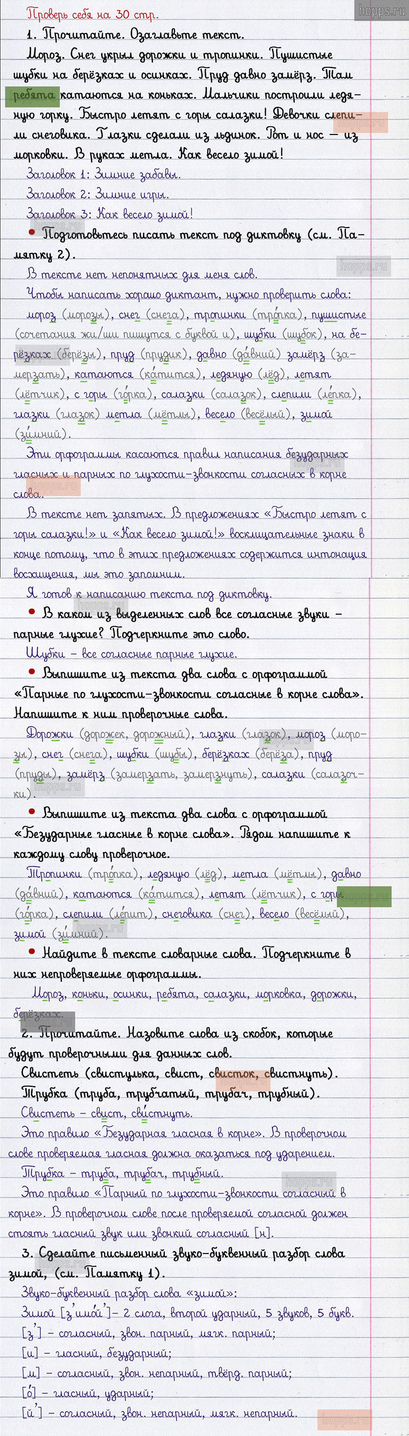 Подробные ответы к заданиям проверь себя на 30 странице 2 части учебника по русскому языку авторов В.П. Канакина, В.Г. Горецкий для учащихся 2 класса.