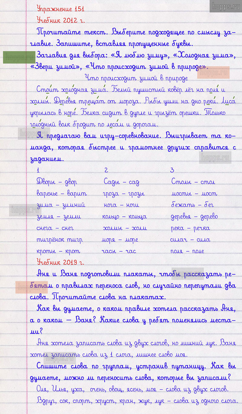 Подробные ответы к 151 упражнению 1 части учебника по русскому языку авторов Л.Ф. Климанова, Т.В. Бабушкина для учащихся 2 класса.