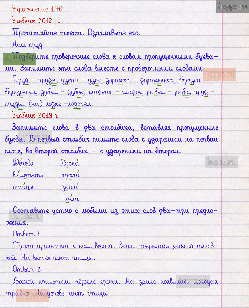 Подробные ответы к 176 упражнению 1 части учебника по русскому языку авторов Л.Ф. Климанова, Т.В. Бабушкина для учащихся 2 класса.