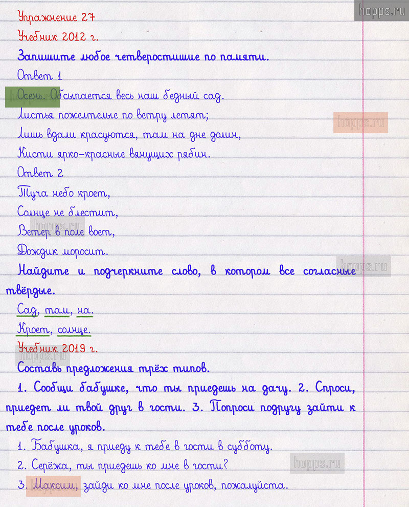 Подробные ответы к 27 упражнению 1 части учебника по русскому языку авторов Л.Ф. Климанова, Т.В. Бабушкина для учащихся 2 класса.