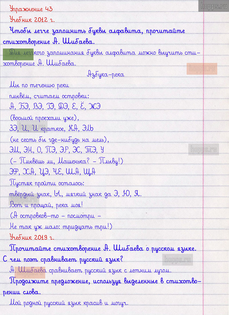 Подробные ответы к 43 упражнению 1 части учебника по русскому языку авторов Л.Ф. Климанова, Т.В. Бабушкина для учащихся 2 класса.