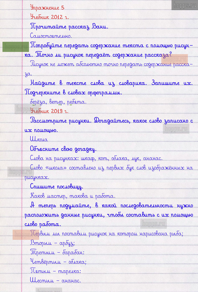 Подробные ответы к 5 упражнению 1 части учебника по русскому языку авторов Л.Ф. Климанова, Т.В. Бабушкина для учащихся 2 класса.