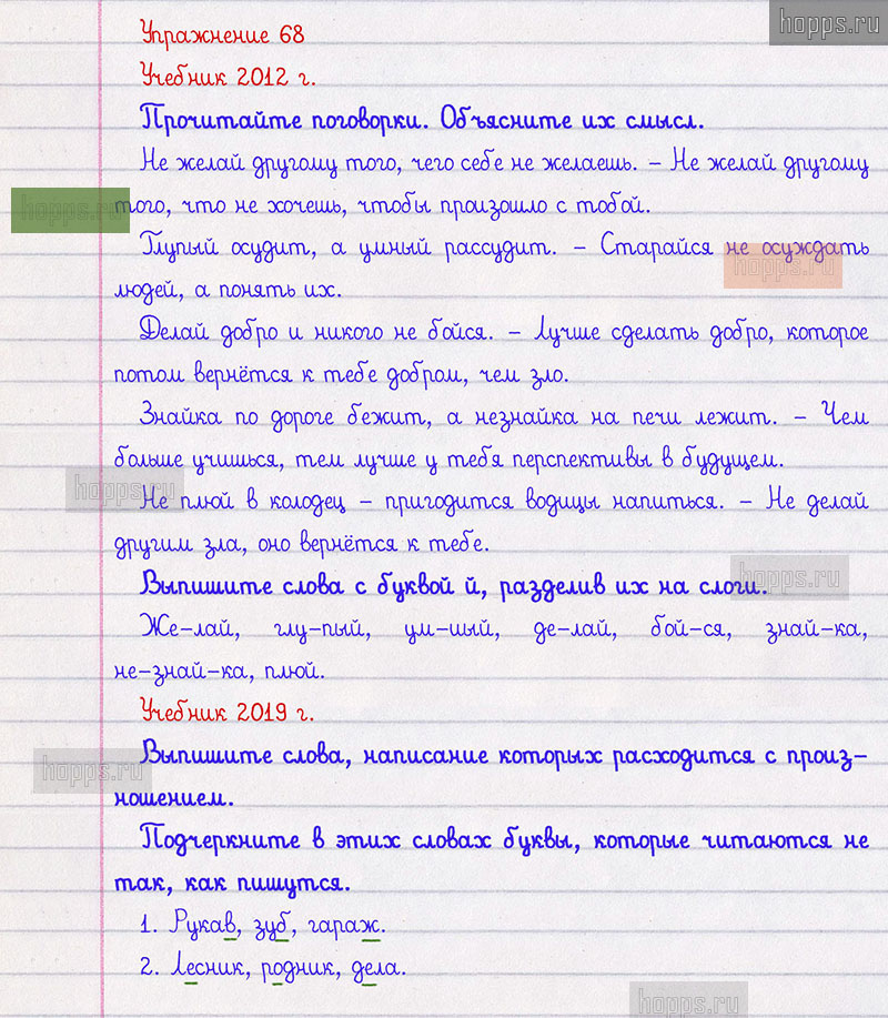 Подробные ответы к 68 упражнению 1 части учебника по русскому языку авторов Л.Ф. Климанова, Т.В. Бабушкина для учащихся 2 класса.