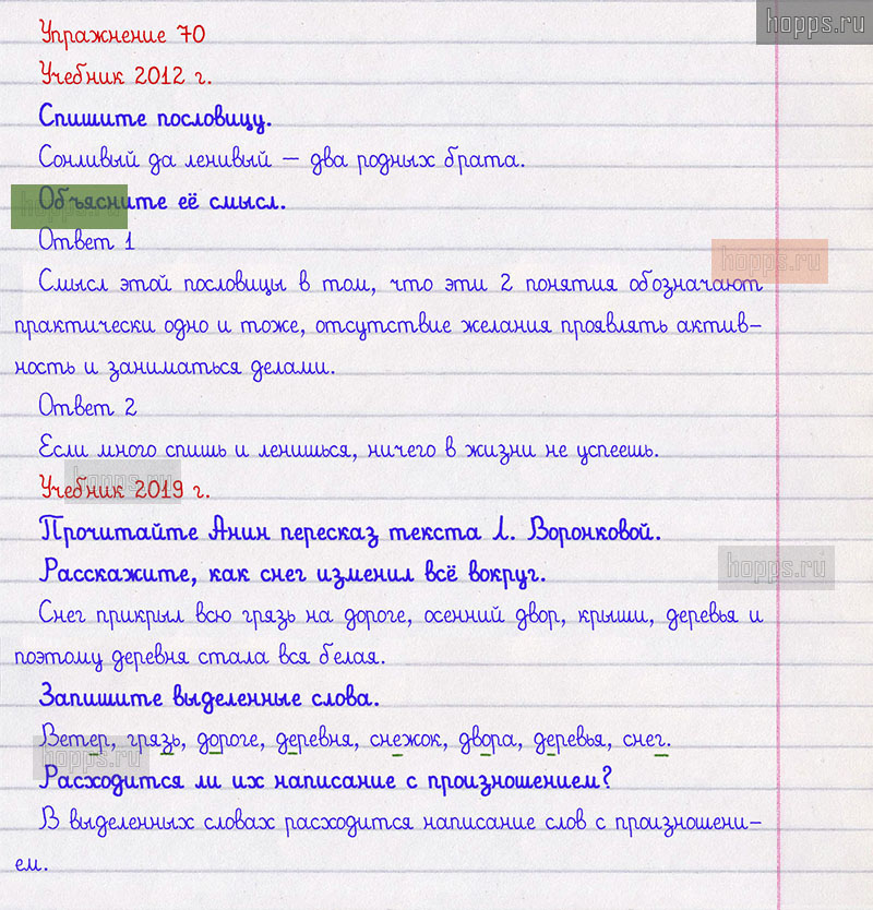 Подробные ответы к 70 упражнению 1 части учебника по русскому языку авторов Л.Ф. Климанова, Т.В. Бабушкина для учащихся 2 класса.