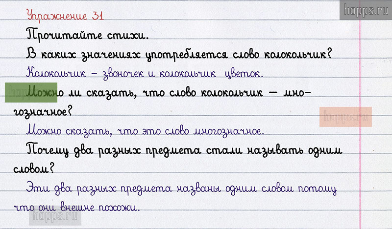 Подробные ответы к 31 упражнению 2 части учебника 2012 года по русскому языку авторов Л.Ф. Климанова, Т.В. Бабушкина для учащихся 2 класса.