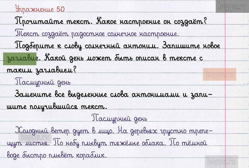 Подробные ответы к 50 упражнению 2 части учебника 2012 года по русскому языку авторов Л.Ф. Климанова, Т.В. Бабушкина для учащихся 2 класса.
