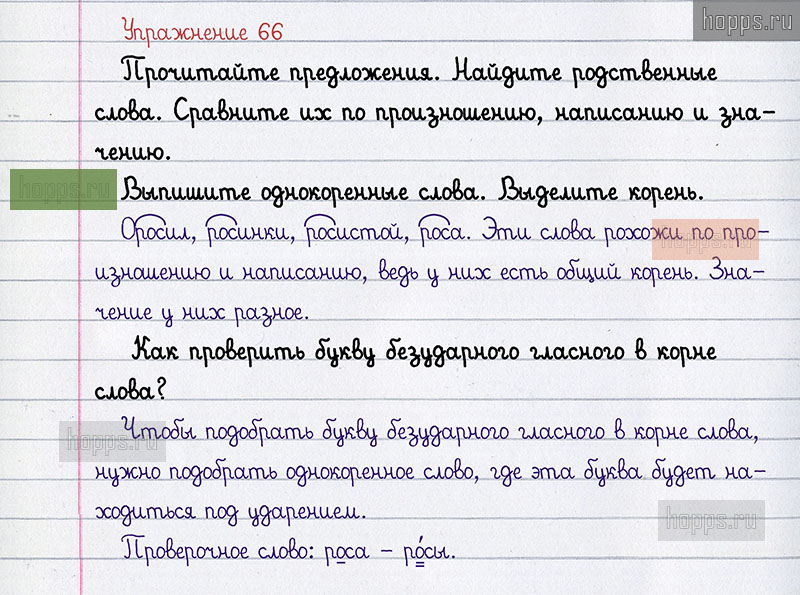 Подробные ответы к 66 упражнению 2 части учебника 2012 года по русскому языку авторов Л.Ф. Климанова, Т.В. Бабушкина для учащихся 2 класса.