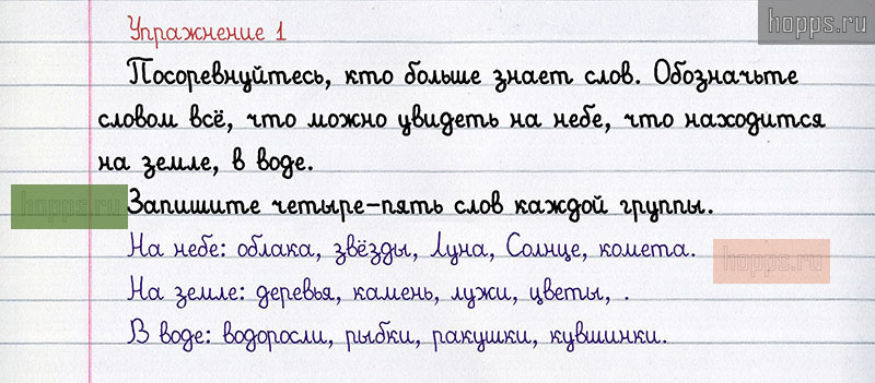 ГДЗ к 1 упражнению учебника 2019 года по русскому языку Л.Ф. Климанова, Т.В. Бабушкина за 2 класс 2 часть | Источник: Hopps.ru