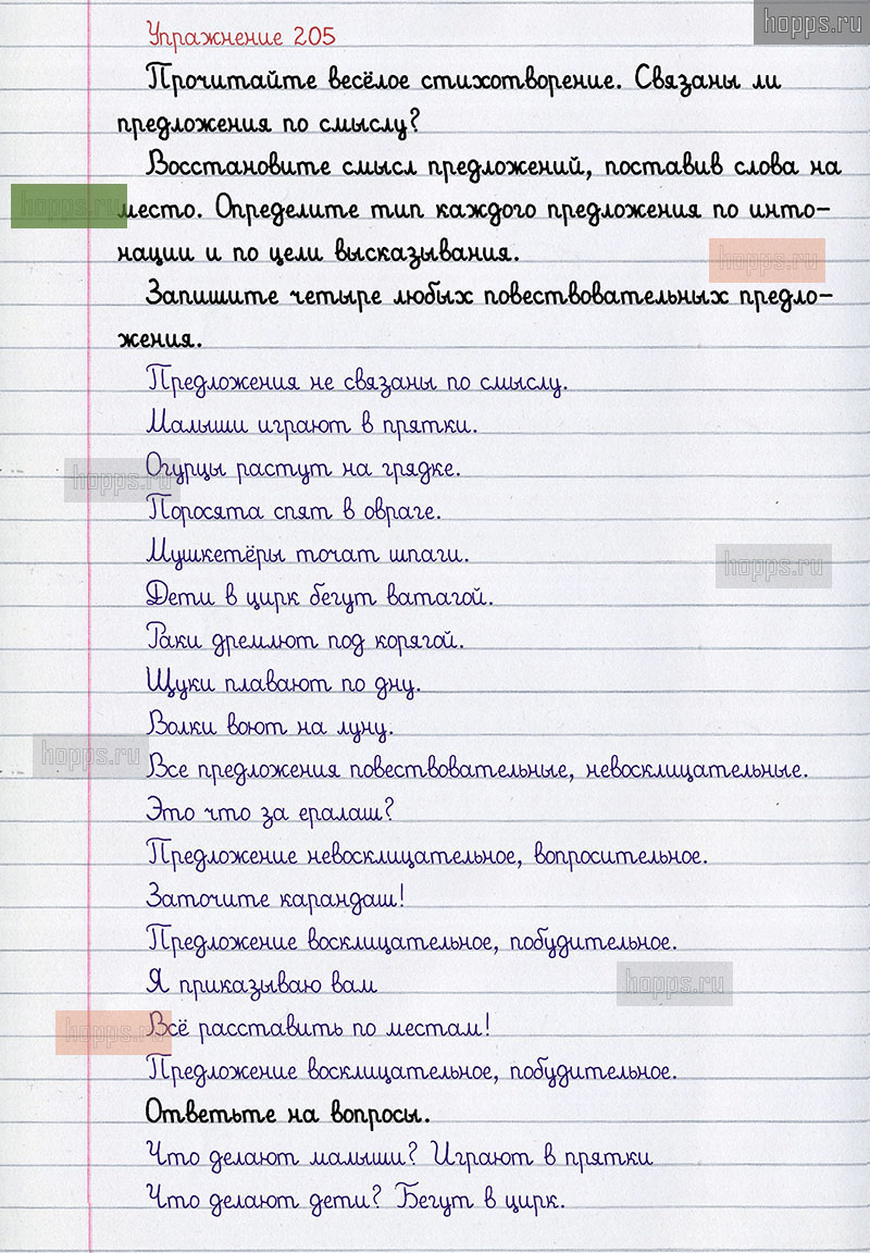 Подробные ответы к 205 упражнению 2 части учебника 2019 года по русскому языку авторов Л.Ф. Климанова, Т.В. Бабушкина для учащихся 2 класса.