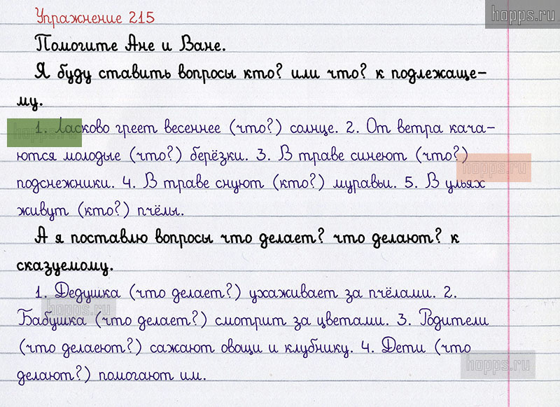 Подробные ответы к 215 упражнению 2 части учебника 2019 года по русскому языку авторов Л.Ф. Климанова, Т.В. Бабушкина для учащихся 2 класса.