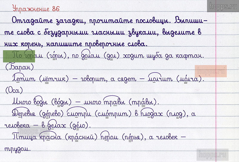 Подробные ответы к 86 упражнению 2 части учебника 2019 года по русскому языку авторов Л.Ф. Климанова, Т.В. Бабушкина для учащихся 2 класса.