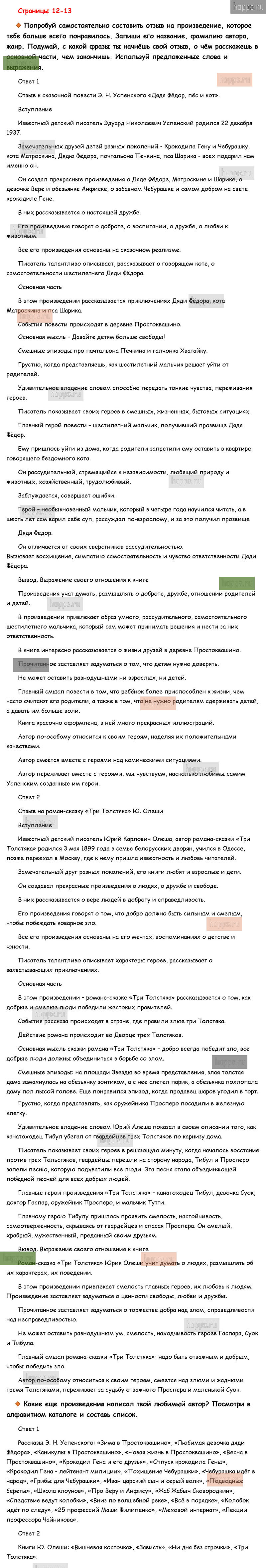 Готовые ответы к вопросам и заданиям на 12-13 странице рабочей тетради по литературному чтению для учащихся 3 класса, авторов М.В. Бойкина, Л.А. Виноградская, Школа России, 2019 г.