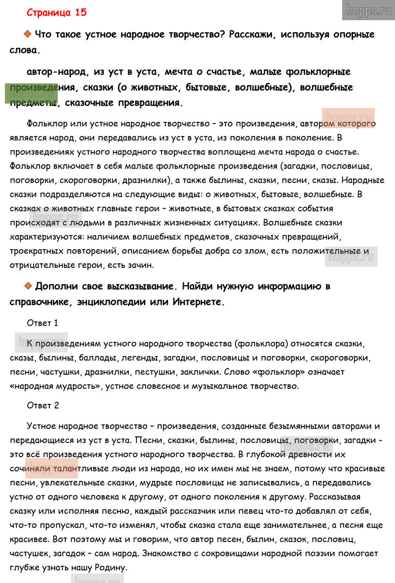 Готовые ответы к вопросам и заданиям на 15 странице рабочей тетради по литературному чтению для учащихся 3 класса, авторов М.В. Бойкина, Л.А. Виноградская, Школа России, 2019 г.