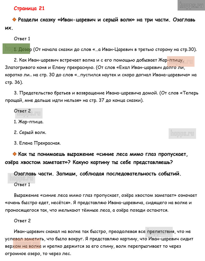 Готовые ответы к вопросам и заданиям на 21 странице рабочей тетради по литературному чтению для учащихся 3 класса, авторов М.В. Бойкина, Л.А. Виноградская, Школа России, 2019 г.