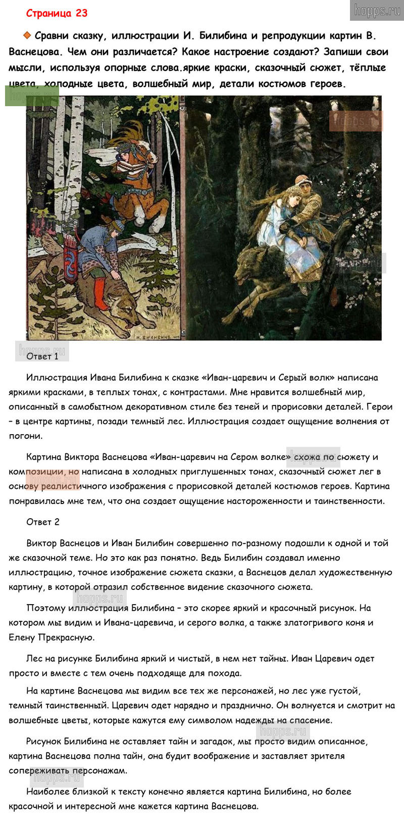 Готовые ответы к вопросам и заданиям на 23 странице рабочей тетради по литературному чтению для учащихся 3 класса, авторов М.В. Бойкина, Л.А. Виноградская, Школа России, 2019 г.