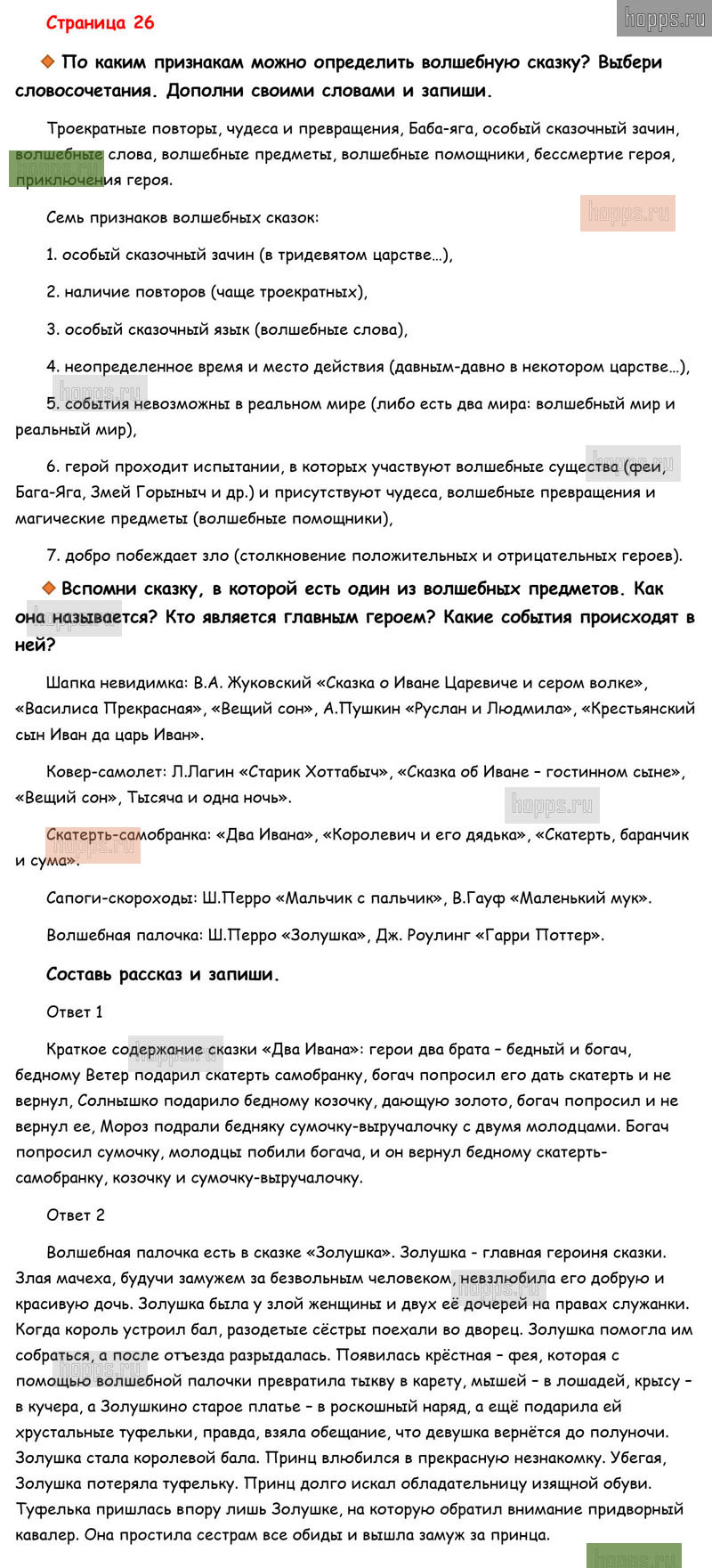 Готовые ответы к вопросам и заданиям на 26 странице рабочей тетради по литературному чтению для учащихся 3 класса, авторов М.В. Бойкина, Л.А. Виноградская, Школа России, 2019 г.