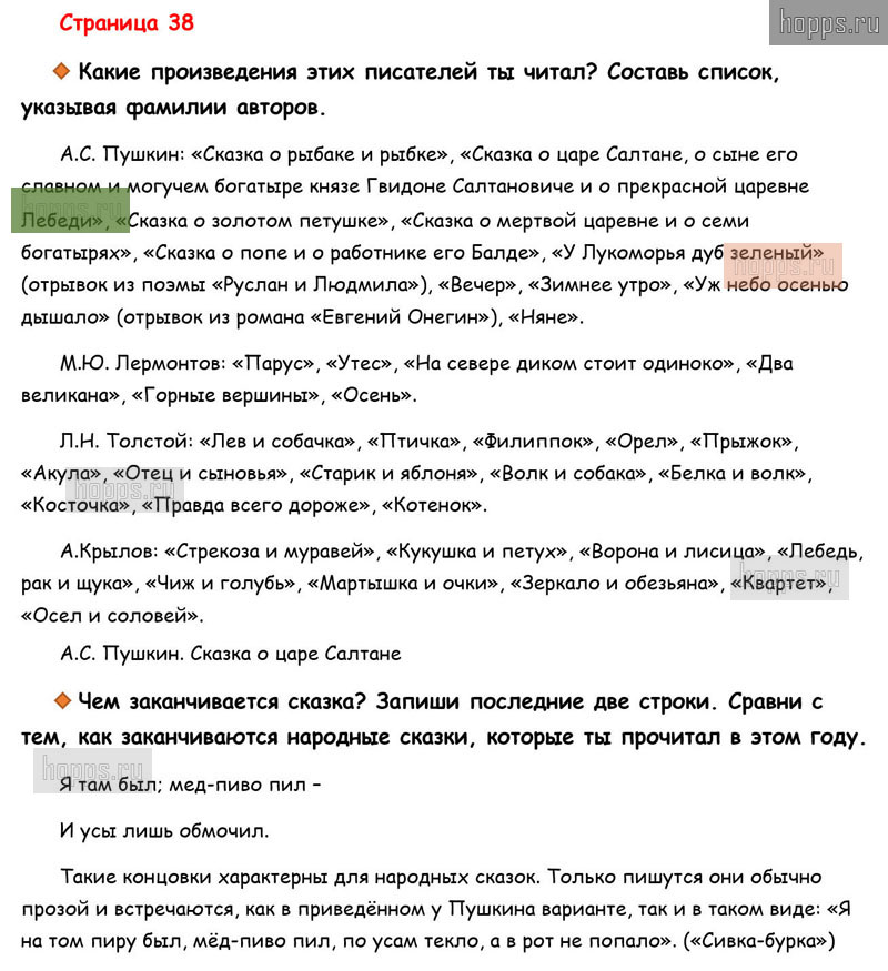 Готовые ответы к вопросам и заданиям на 38 странице рабочей тетради по литературному чтению для учащихся 3 класса, авторов М.В. Бойкина, Л.А. Виноградская, Школа России, 2019 г.