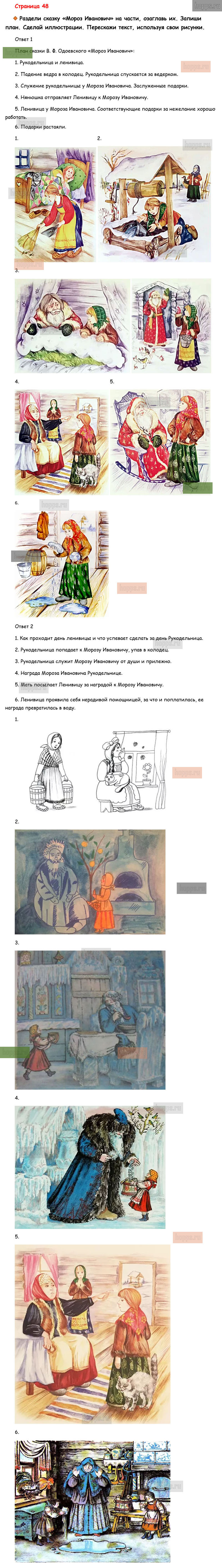 Готовые ответы к вопросам и заданиям на 48 странице рабочей тетради по литературному чтению для учащихся 3 класса, авторов М.В. Бойкина, Л.А. Виноградская, Школа России, 2019 г.