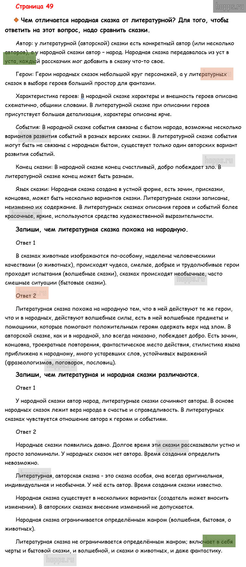 Готовые ответы к вопросам и заданиям на 49 странице рабочей тетради по литературному чтению для учащихся 3 класса, авторов М.В. Бойкина, Л.А. Виноградская, Школа России, 2019 г.