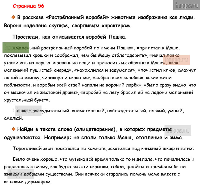 Готовые ответы к вопросам и заданиям на 56 странице рабочей тетради по литературному чтению для учащихся 3 класса, авторов М.В. Бойкина, Л.А. Виноградская, Школа России, 2019 г.