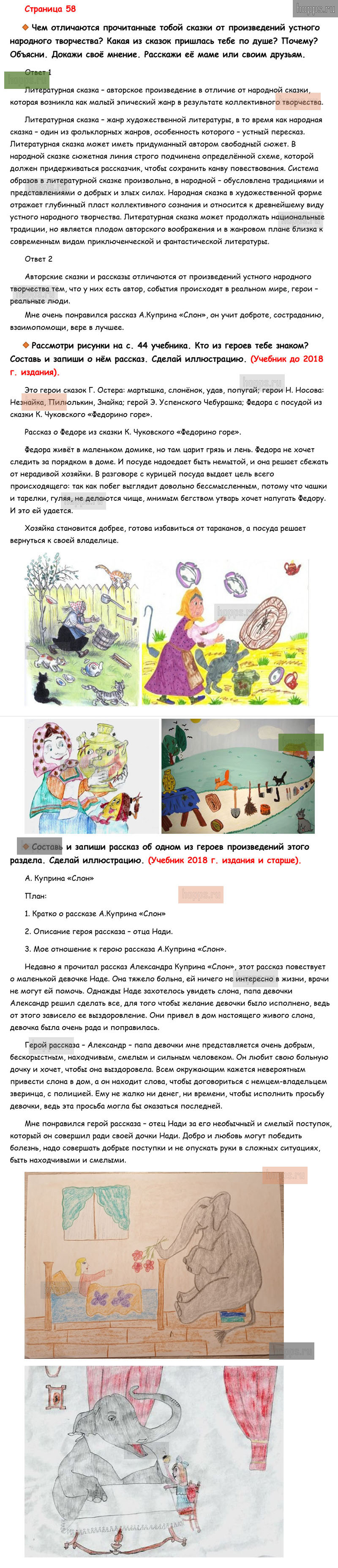 Готовые ответы к вопросам и заданиям на 58 странице рабочей тетради по литературному чтению для учащихся 3 класса, авторов М.В. Бойкина, Л.А. Виноградская, Школа России, 2019 г.