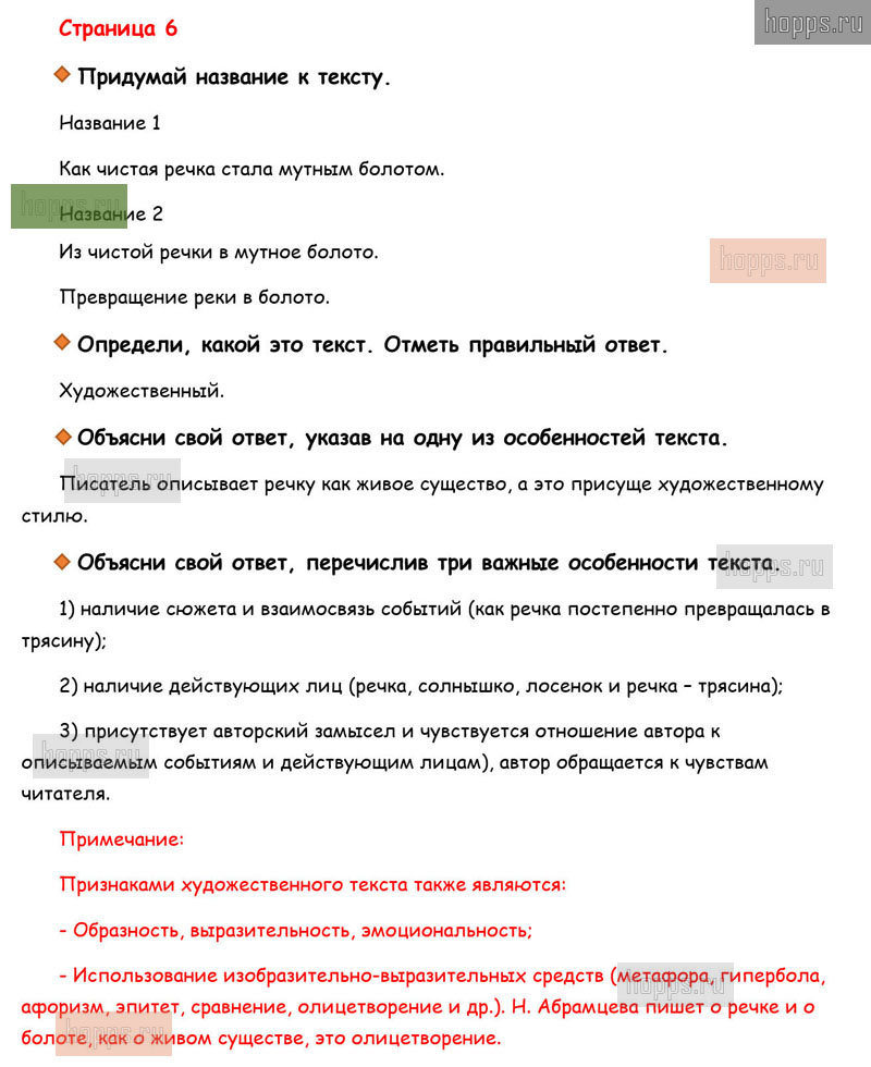 Готовые ответы к вопросам и заданиям на 6 странице рабочей тетради по литературному чтению для учащихся 3 класса, авторов М.В. Бойкина, Л.А. Виноградская, Школа России, 2019 г.