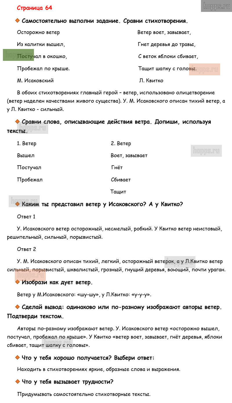 Готовые ответы к вопросам и заданиям на 64 странице рабочей тетради по литературному чтению для учащихся 3 класса, авторов М.В. Бойкина, Л.А. Виноградская, Школа России, 2019 г.